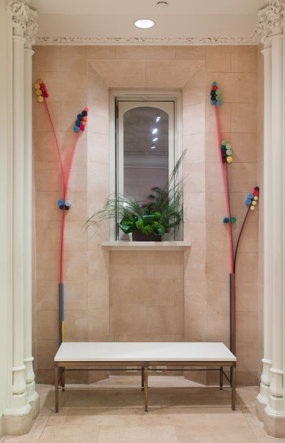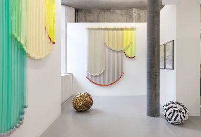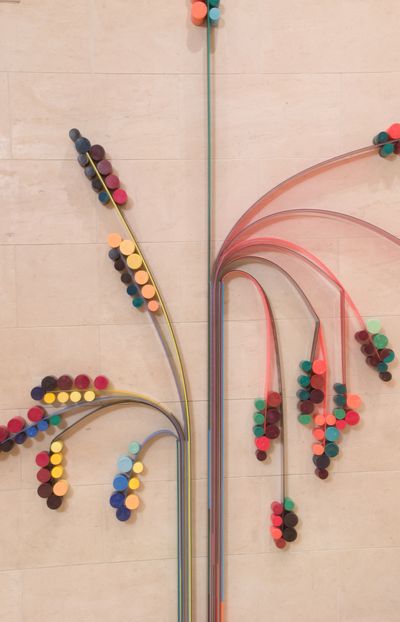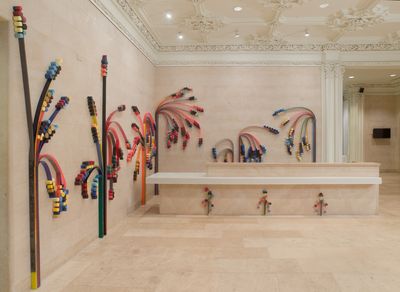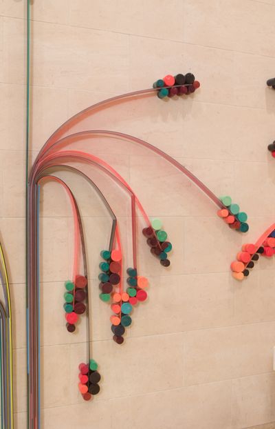 Wall based installation made from polyurethane foam, vinyl and plastic