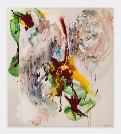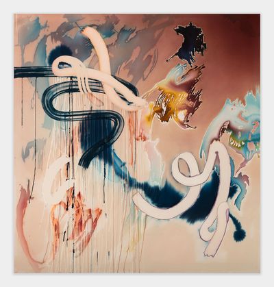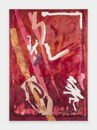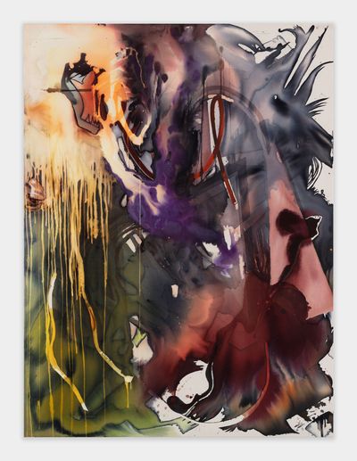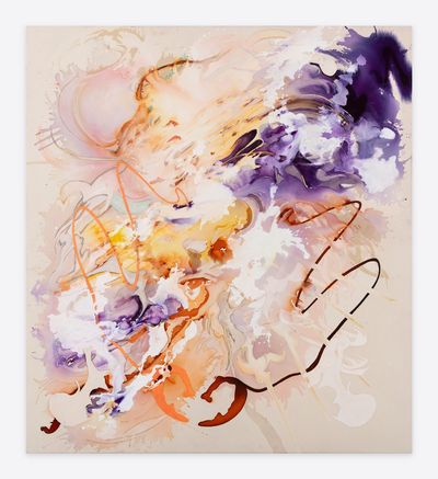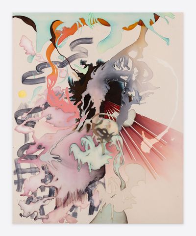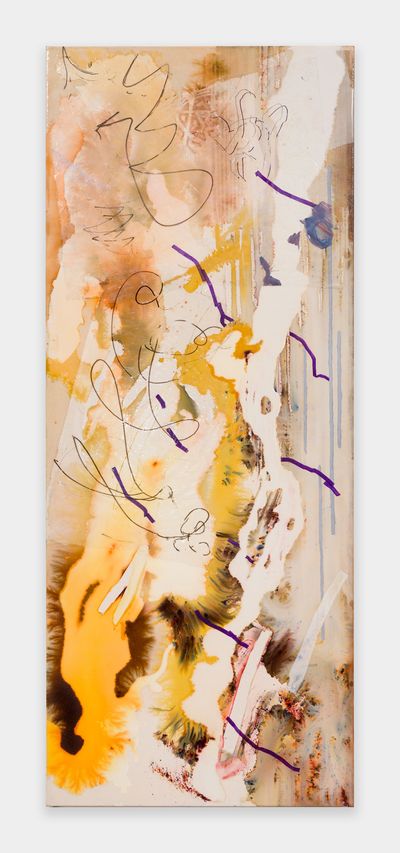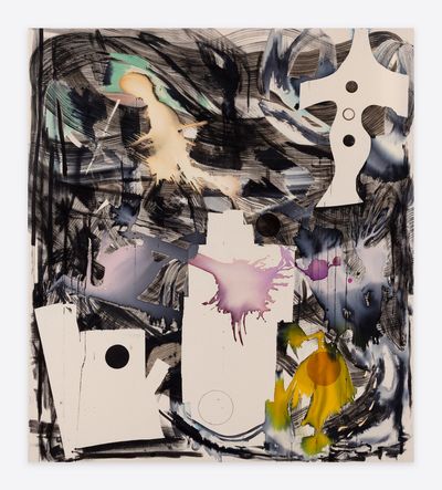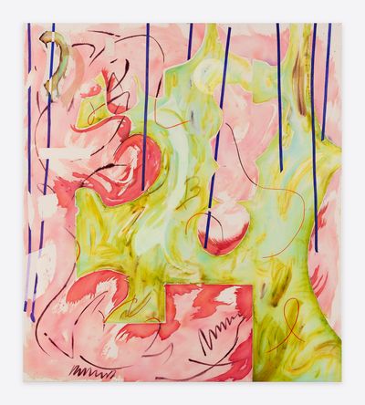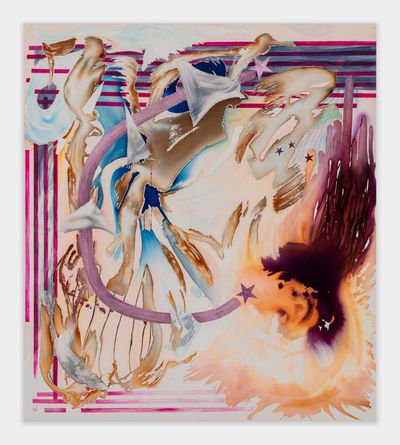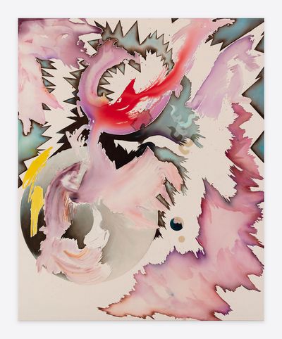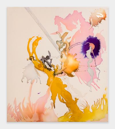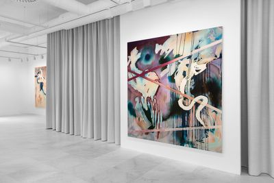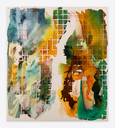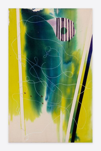 Jorunn Hancke Øgstad is a Norwegian artist exploring the language of abstraction through painting and sculpture. Using fabric dye, resin and plastics on unprimed canvas, the artist mimics watercolor, spray paint and print processes, often within the same work, co-opting techniques commonly found in expressionist, street and pop art practices.