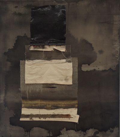Paraffin, Stof, Klebstof auf Glas Wax, fabric, glue on glass