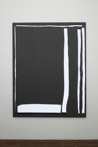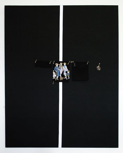 Tobias Kaspar, Untitled (NFS32-Scene with dog, black background with white stripe), 2018