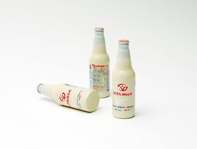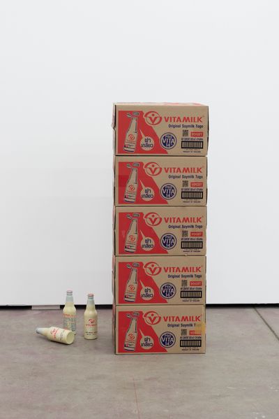 5 Vitamilk cardboard boxes (not pictured), bronze, oil paint