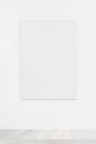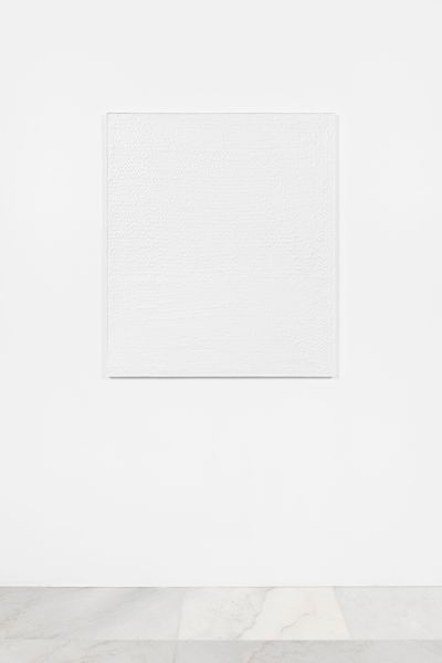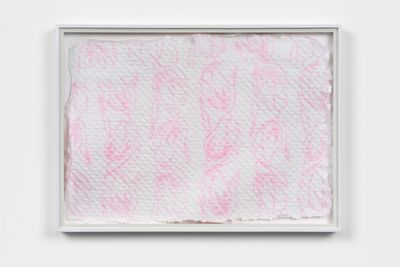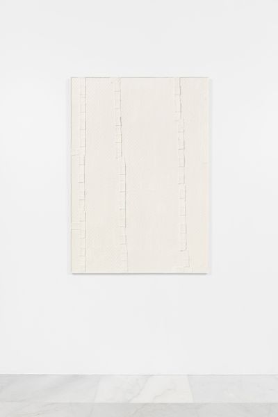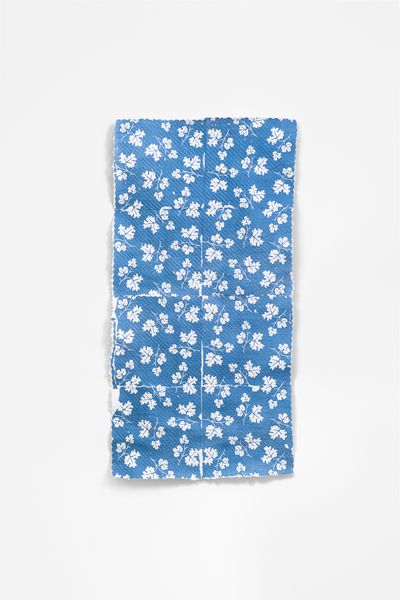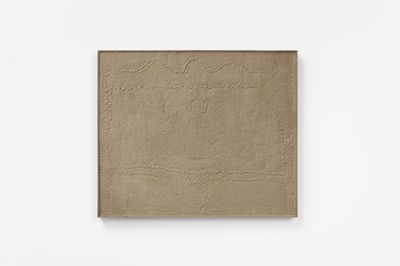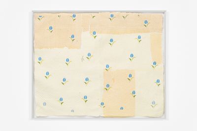 Building on previous exhibitions, Sæther’s exhibition at VI, VII groups several kinds of works together, including 4 paintings cast in paper pulp that resemble “strietapet,” a wallpaper first introduced to Norway in the 1950s, and which came to fill almost every home over the next two decades. A plaster cast is also included of an imagined fixture (Untitled, 2022) as well as several works on paper constructed from vintage paper napkins so popular that enthusiasts have built entire collections around them.