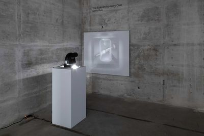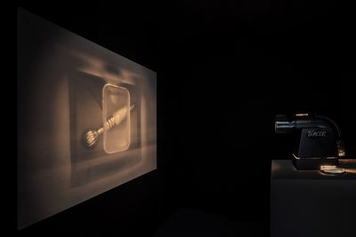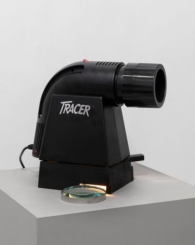 Doris Guo’s works at June Art Fair are linked through their delicate construction of mysterious forms. A projector with object placed discretely inside (Unwhere, 2023) projects a baffling form.