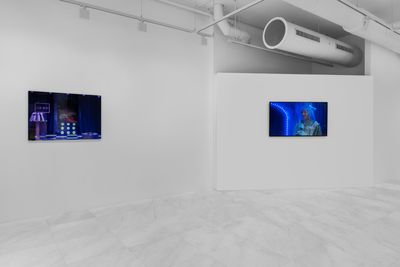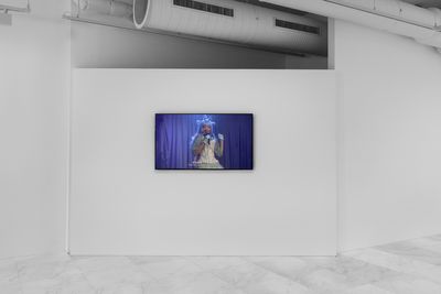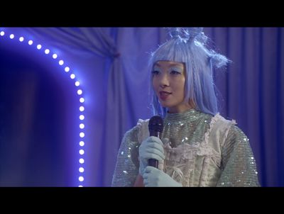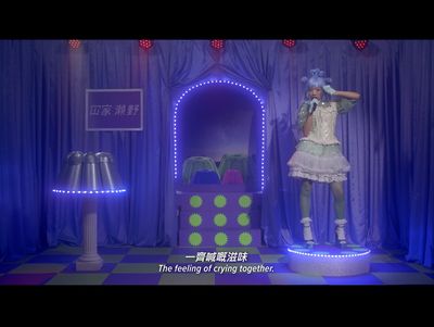 At the center of the exhibition, a music video excerpted from a key moment in the film, loops on a monitor (Live Show of “Our Story with Hemorrhoid,” 2024). In it a singer—a standin for Ann, the protagonist—sings of personal suffering and trauma turned into a collective, shared experience through her family’s treatment and removal of hemorrhoids. Disconnected from the film, the dreamlike and psychedelic visual and auditory styling of this scene is amplified, inviting audiences to engage intimately with the complexities of identity and belonging in a foreign land.